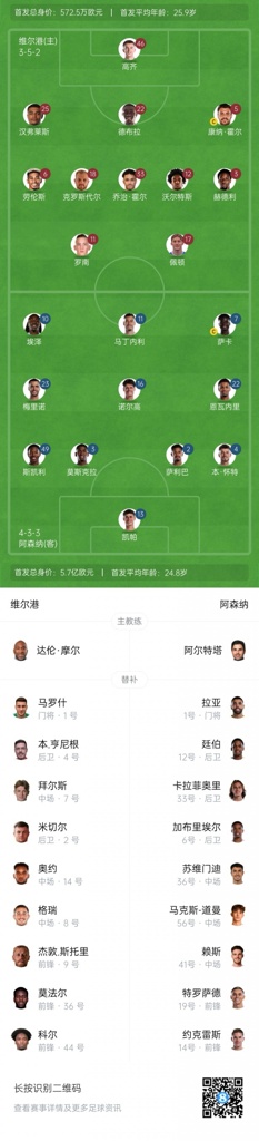 9月25日讯 联赛杯第3轮,阿森纳客战英甲球队维尔港,赛前首发公布。